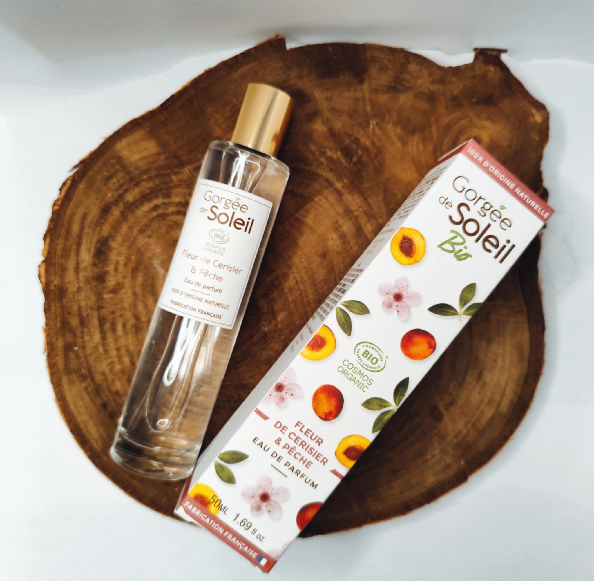 Fruitée, gourmande et florale, l’Eau de parfum Fleur de Cerisier & Pêche est certifiée BIO COSMOS et élaborée avec 100% d’ingrédients d’origine naturelle. Elle vous propose un voyage à travers les cerisiers en fleurs, à la douceur du printemps.