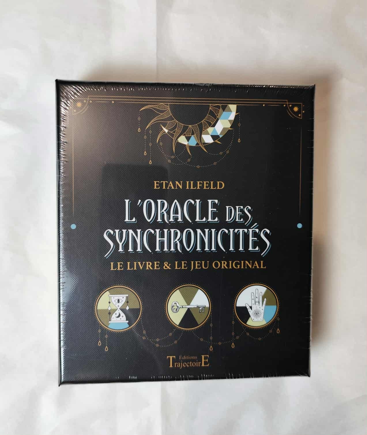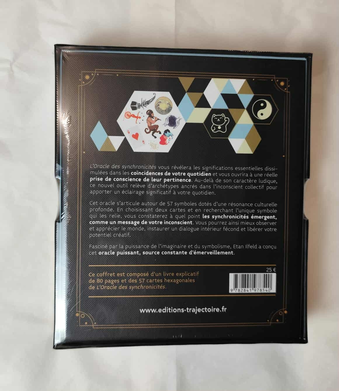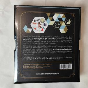 Ce coffret est composé d’un livre explicatif de 80 pages et des 57 cartes hexagonales de l’Oracle des Synchronicités.